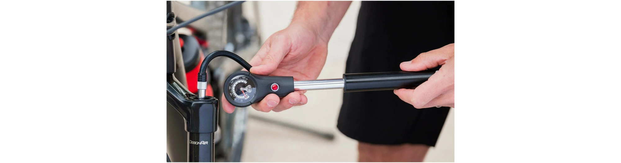 - Fonction spéciale haute et basse pression, qui permet d’utiliser cette pompe à la fois pour les amortisseurs, les fourches et les pneus
