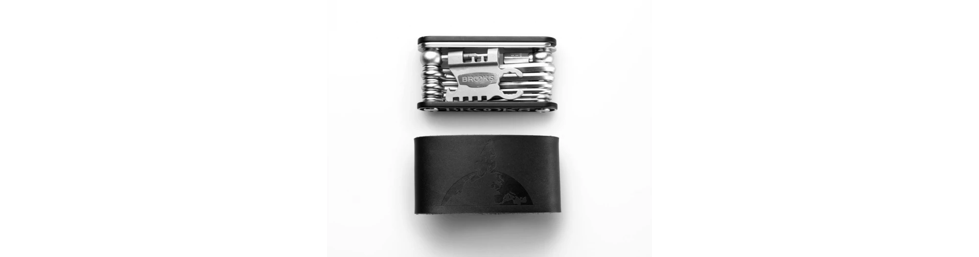 L’outil multifonction Brooks MT21 en noir ou brun possède 21 outils. Il est une aide précieuse quelle que soit la panne! Il est compact et se range dans son étui chic en cuir.