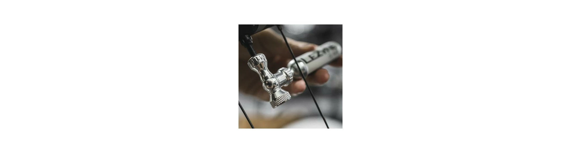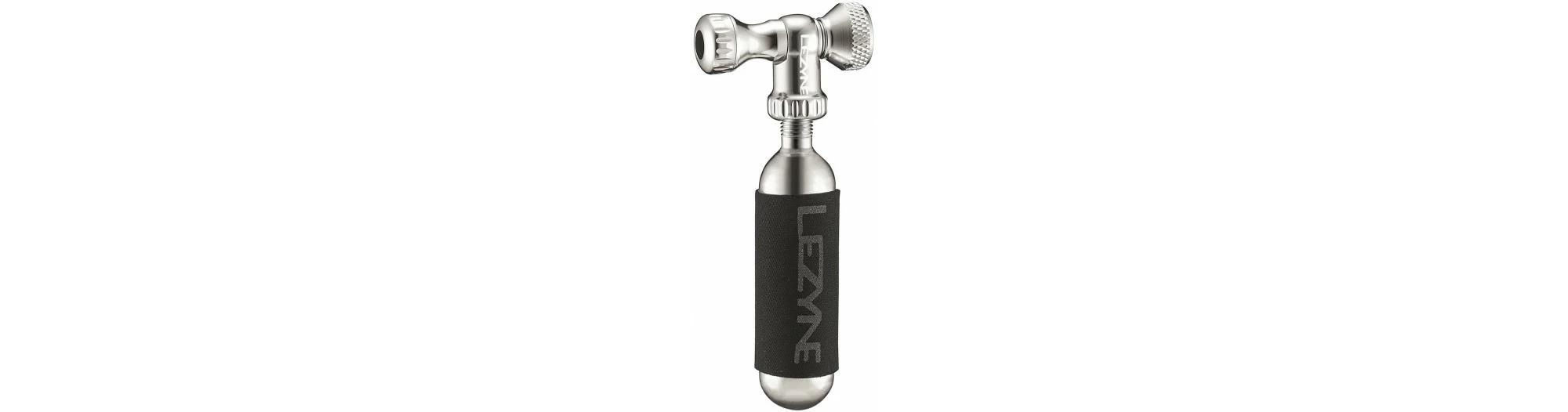 Distributeur en aluminium usiné CNC avec internes en laiton. Le bouton de commande CNC tourne pour un gonflage facile et contrôlé. La tête du percuteur à double glissement s’appuie sur les valves Presta et Schrader. Le manchon en néoprène isole la main du froid pendant la décharge. Compatible avec les cartouches de CO2 filetées.