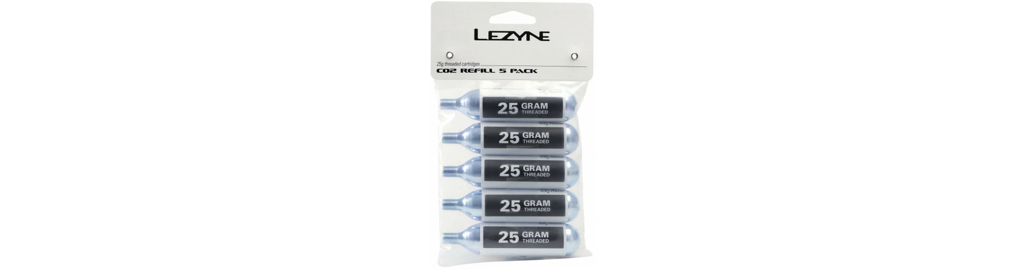 Cartouches de CO2 filetées à utiliser avec tous les gonfleurs de CO2 Lezyne. Les cartouches de CO2 de 25 g contiennent une charge plus importante, adaptée aux pneus MTB de grand volume.