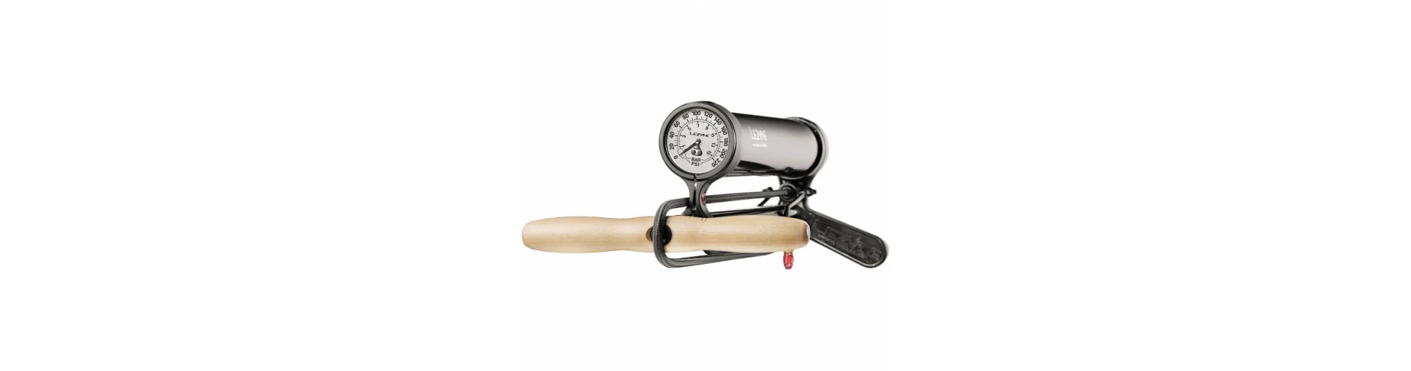 Pompe à pied innovante avec système intégré pour le gonflage de pneus sans chambre à air. Une chambre secondaire peut être pressurisée manuellement et la pédale en acier inoxydable libère l’air comprimé. Cela permet d’obtenir une pression d’air forte et continue.