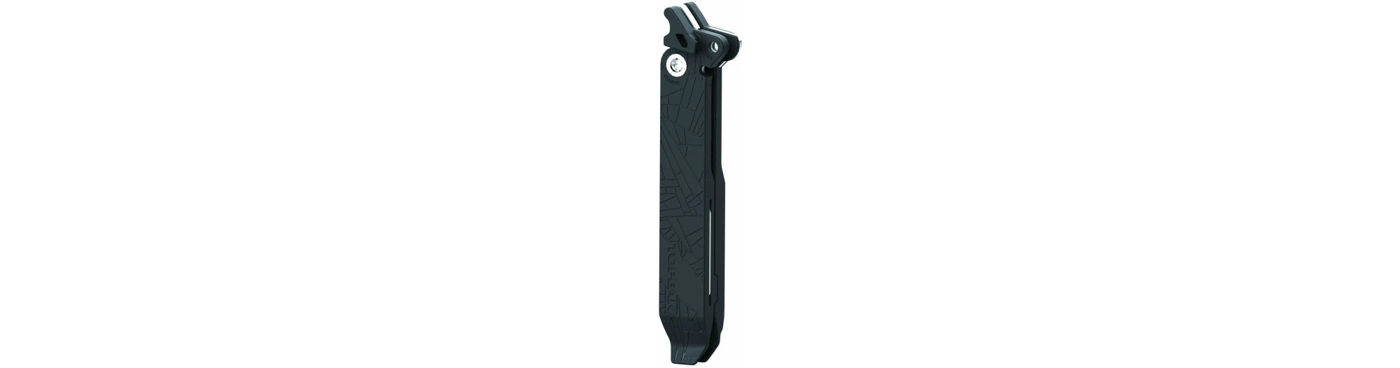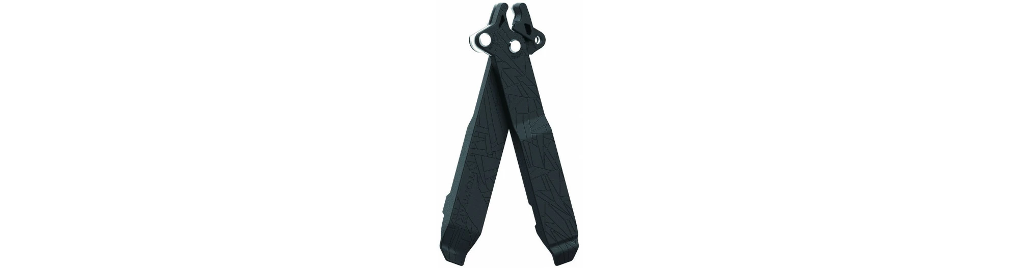 L’outil Topeak Power Lever X fait office de pince attache rapide et de démonte-pneu. Démonté, il se présente sous la forme de deux démonte-pneus ultra robustes. Assemblé, le Power Lever se transforme en une pince à attache rapide avec crochet maintien chaîne et intègre un compartiment pour attache rapide. Selon le sens de montage, tu peux ouvrir ou fermer l’attache rapide. Il intègre en outre une clé à valve placée sur le côté permettant de démonter l’obus des valves Presta. Lorsqu’il est monté en parallèle, il est si petit et léger qu’il se glisse facilement dans une sacoche ou une poche de maillot.
